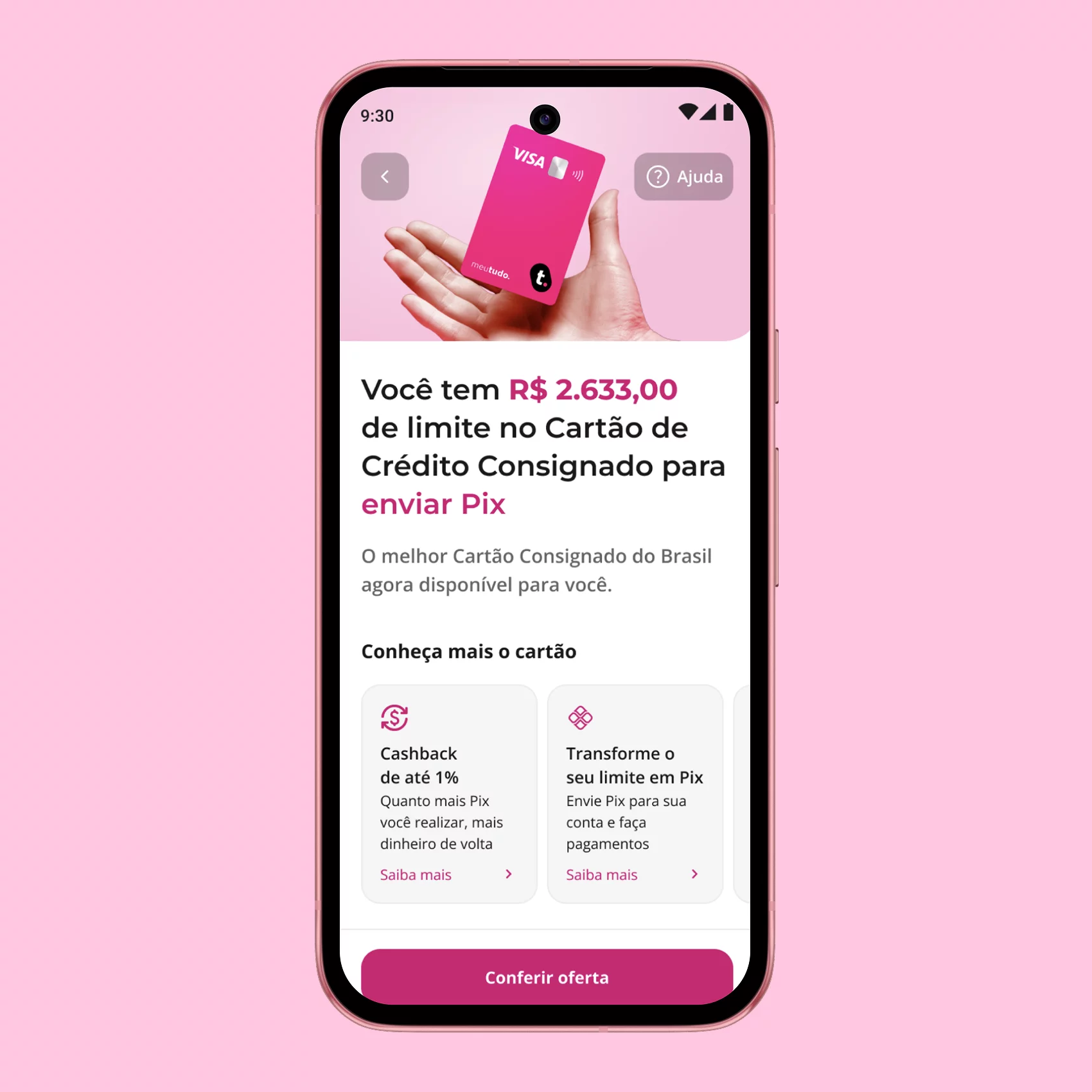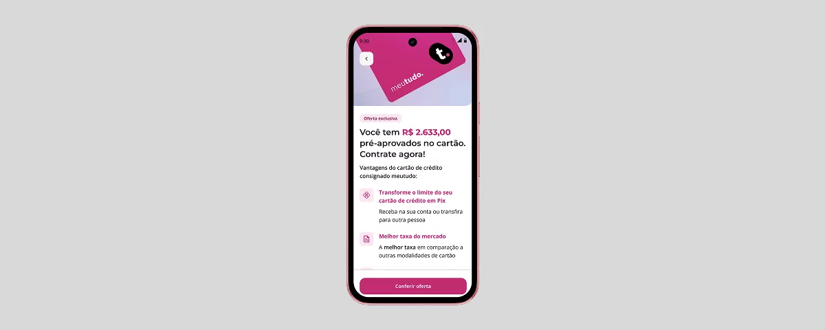 After joining Meutudo’s INSS product team in 2024, I was assigned to lead the design of the Consigned Credit Card, a new product aimed at retirees and pensioners. The card offered several benefits, including cash withdrawals from the credit limit, cashback, life insurance, pharmacy discounts, and significantly lower interest rates than traditional credit cards.